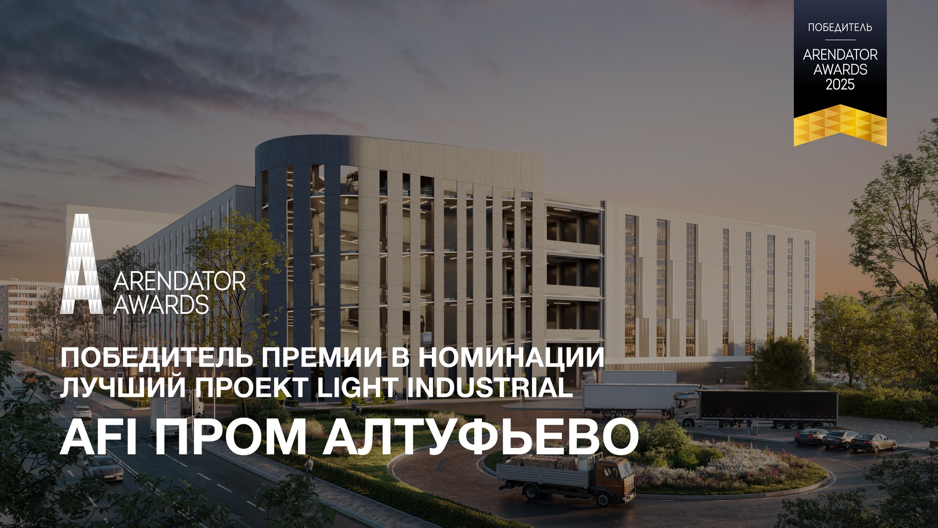 9 октября состоялась церемония награждения победителей федеральной премии Arendator Awards 2025, и наш проект AFI ПРОМ Алтуфьево одержал блестящую победу в номинации «Лучший проект light industrial».
